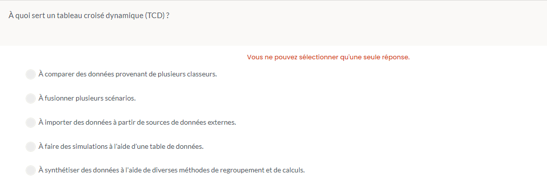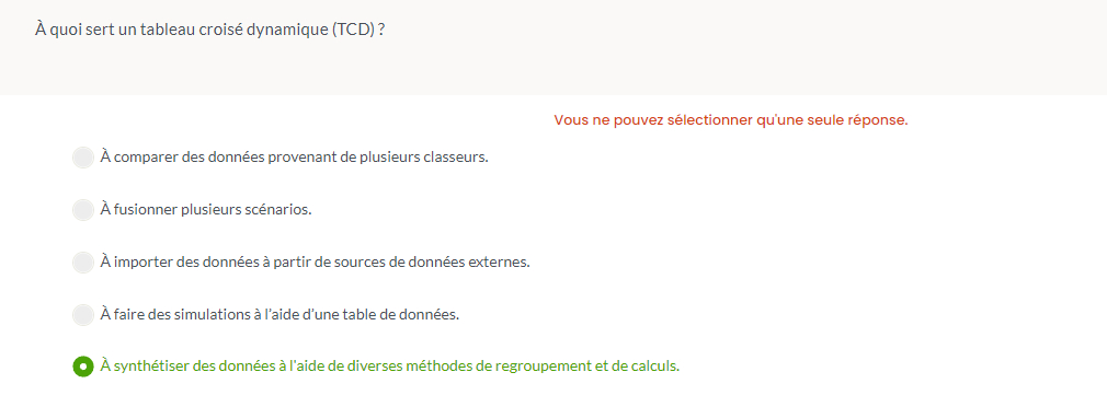 Question aléatoire n°108 sur l'application Excel - New test - Question n°4/21 [Voir la réponse] - Suivante »