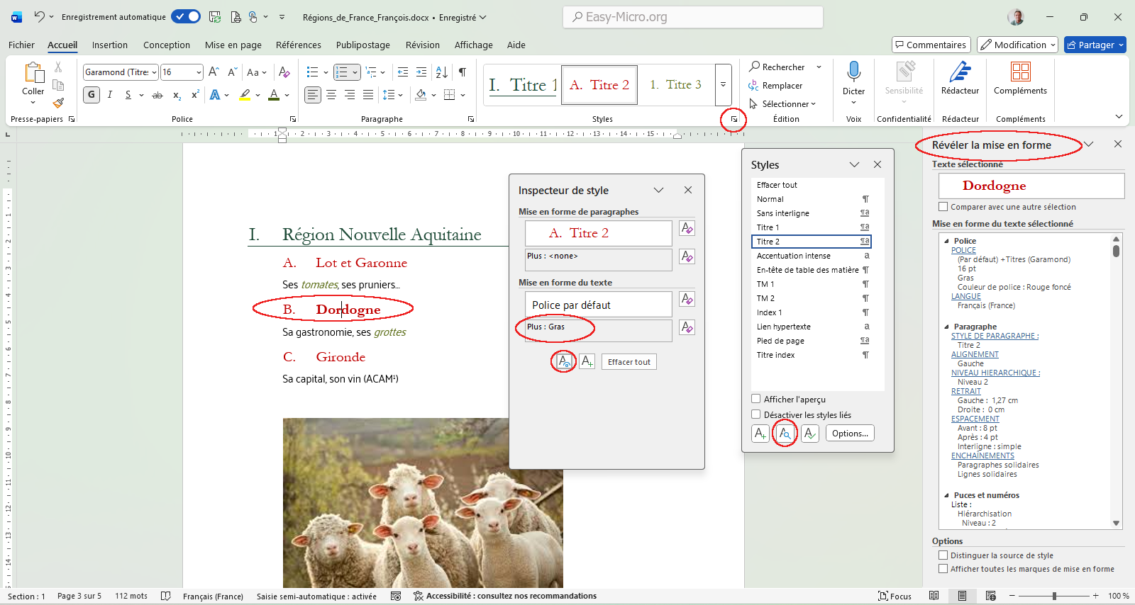 Toutefois, si vous sélectionnez un mot ou une phrase dans le paragraphe, puis appliquez un style lié, celui-ci sera appliqué en tant que style de caractère, sans affecter le reste du paragraphe.